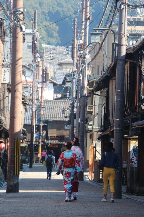游玩了京都代表的地区祇园,祇园是日本规格最高的繁华街,大街纵横方向建成的格子窗和舞妓的风采十分相称,各式发簪和日式服装饰品也是祇园的另一个魅力。